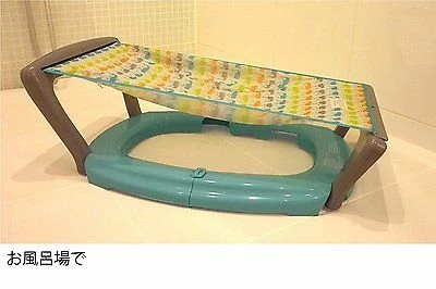 Portable, water-proof bath sling. Quick-drying sling in a compact, rugged plastic body. Folds compactly for travel and storage. Ideal from birth until they sit up unassisted.
