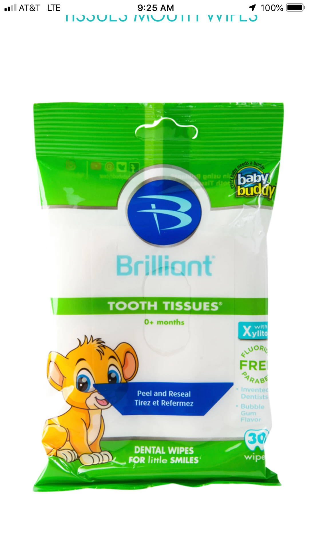The journey to healthy oral hygiene begins at birth. As adults, we take the time to regularly brush and floss. We have to teach our children these same wonderful habits from the very beginning. Tooth Tissues® dental wipes is the first “buddy,” or Stage One, in our Baby Buddy Oral Care Program. Tooth Tissues® are oral wipes that help parents start on the path of a life of healthy smiles. Parents can easily cleanse baby’s mouth after feeding, whether milk or formula, wiping their precious baby’s gums or toddler’s smiles. Tooth Tissues® are bamboo* wipes that are bubble-gum flavored and fluoride and paraben free! Invented by Family Dentists with a proprietary blend of xylitol and hydrated silica, Tooth Tissues® are carefully made with babies and toddlers in mind.Â