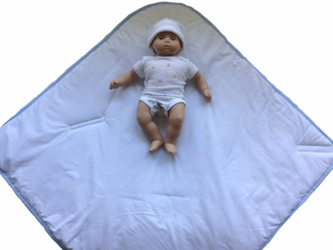 BundleBee baby wrap is one of a kind product that is a cross between a down-like swaddling blanket and a carrier. It is perfect to use in a crib, a bassinet or a bassinet stroller. BundleBee wrap has an insert made out of coconut fibers that provides comfortable back and neck support. The coconut insert allows you to hold or carry the baby while she is asleep without waking her up. It also protects your baby and apposes back and neck when friends and family hold her. Since new babies start to move and wiggle after 2 or 3 weeks after birth, traditional swaddles stop being effective quickly. BundleBee wrap is designed to provide room for natural baby movements while they rest or sleep. At the same time, BundleBee wrap is made out of down-like material that still hugs the babies like a normal swaddle. BundleBee wrap is filled with high-quality, hypoallergenic polyester that will not cause overheating or sweating. It will not change shape after washing. The 100% cotton feels great to your baby and apposes delicate skin. BundleBee baby wrap is easy to wrap up or adjust the size. Just fold the bottom up and then fold each side over. Align the Velcro strips, and it is done in 10 seconds tops. Velcro strips let you adjust the size of the bundle. Best for babies from birth to 4 months old.