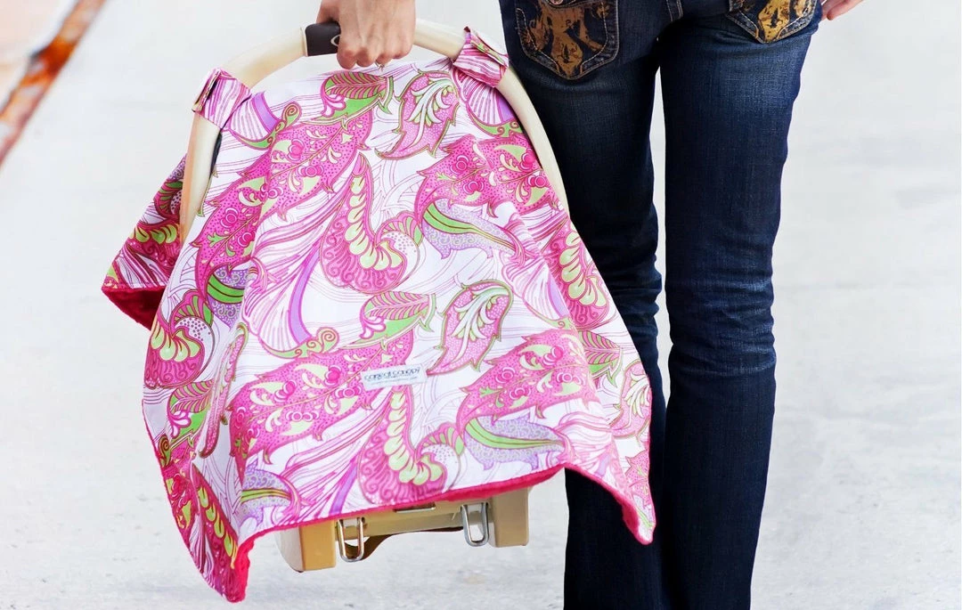 Carseat Canopy™ products are made for “year-round” use – fabrics not too heavy for summer and not too thin for winter. Each one of our canopies has bold, fresh, cutting-edge prints on 100% cotton outers with soft, snuggly, lovable 100% polyester minky interiors. We’ve got your baby covered!