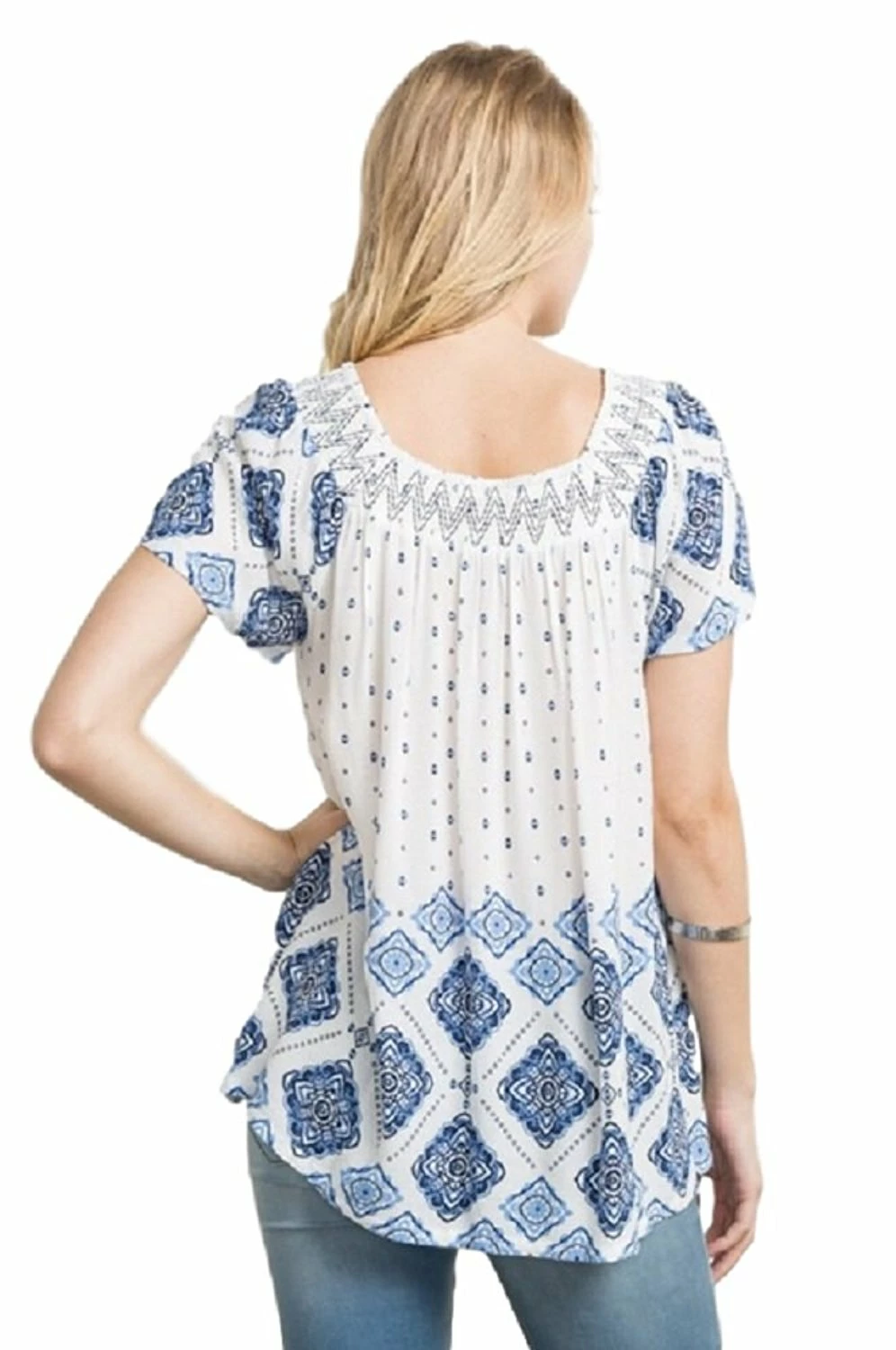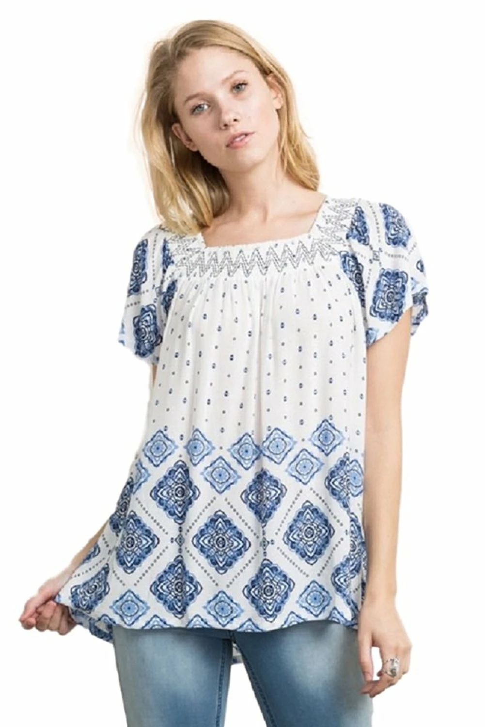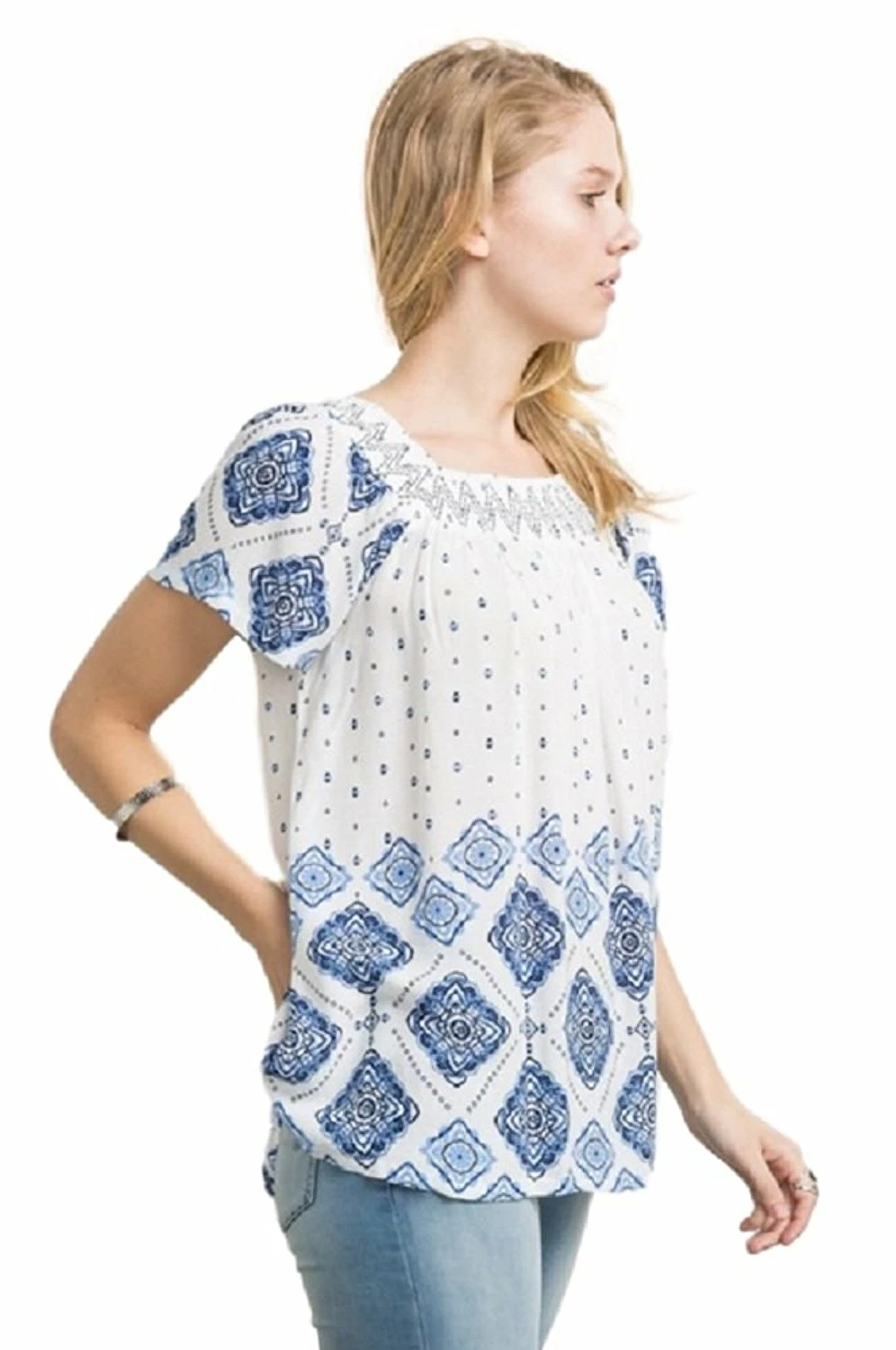 - Your Perfect Chevron Smocked Neck Printed Top 100% Rayon and Imported