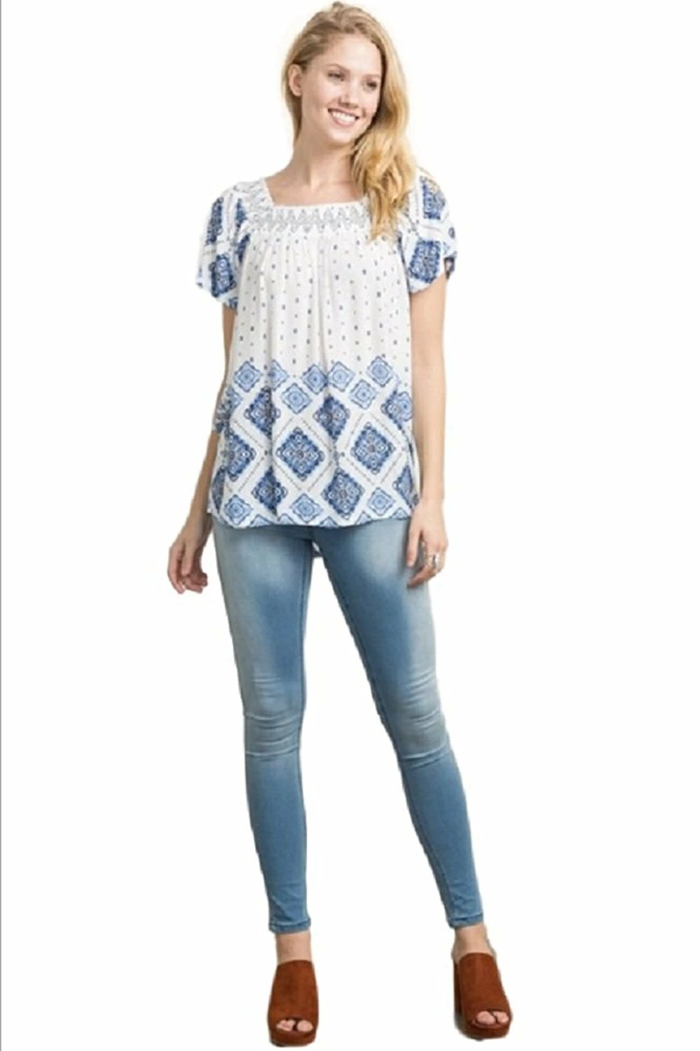 Be the first to review “Chevron Smocked Neck Printed Top By IVETH” Cancel reply