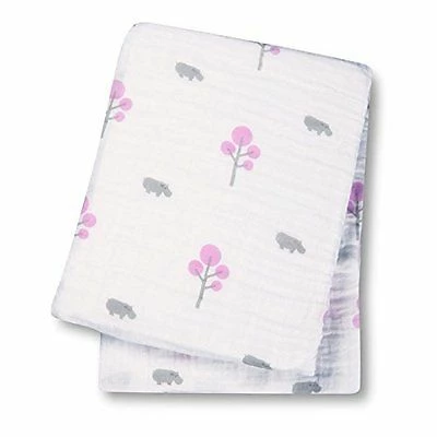 Lulujo Baby Cotton Muslin Swaddling Blanket Pink Hippo