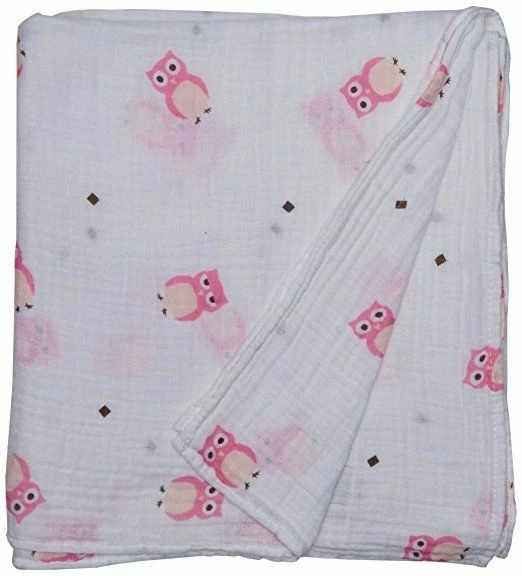 Lulujo Baby Muslin Cotton Swaddling Blanket – Pink Owl
