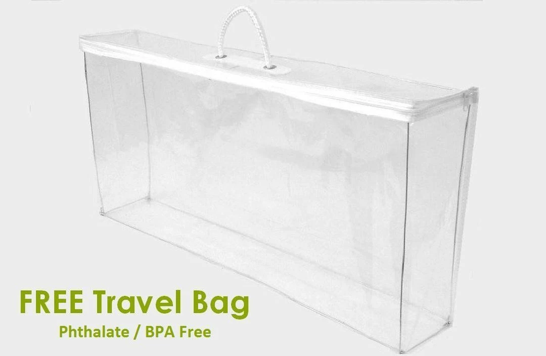 - Includes travel/storage bag and a separate carrying handle