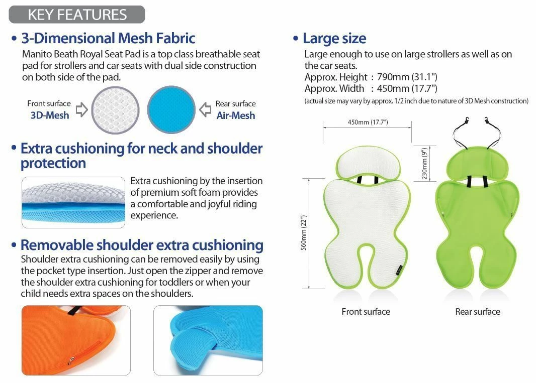 Manito Breath Royal Plus 3D Mesh BPST-49000 Stroller & Car Seat Pad Orange Gear