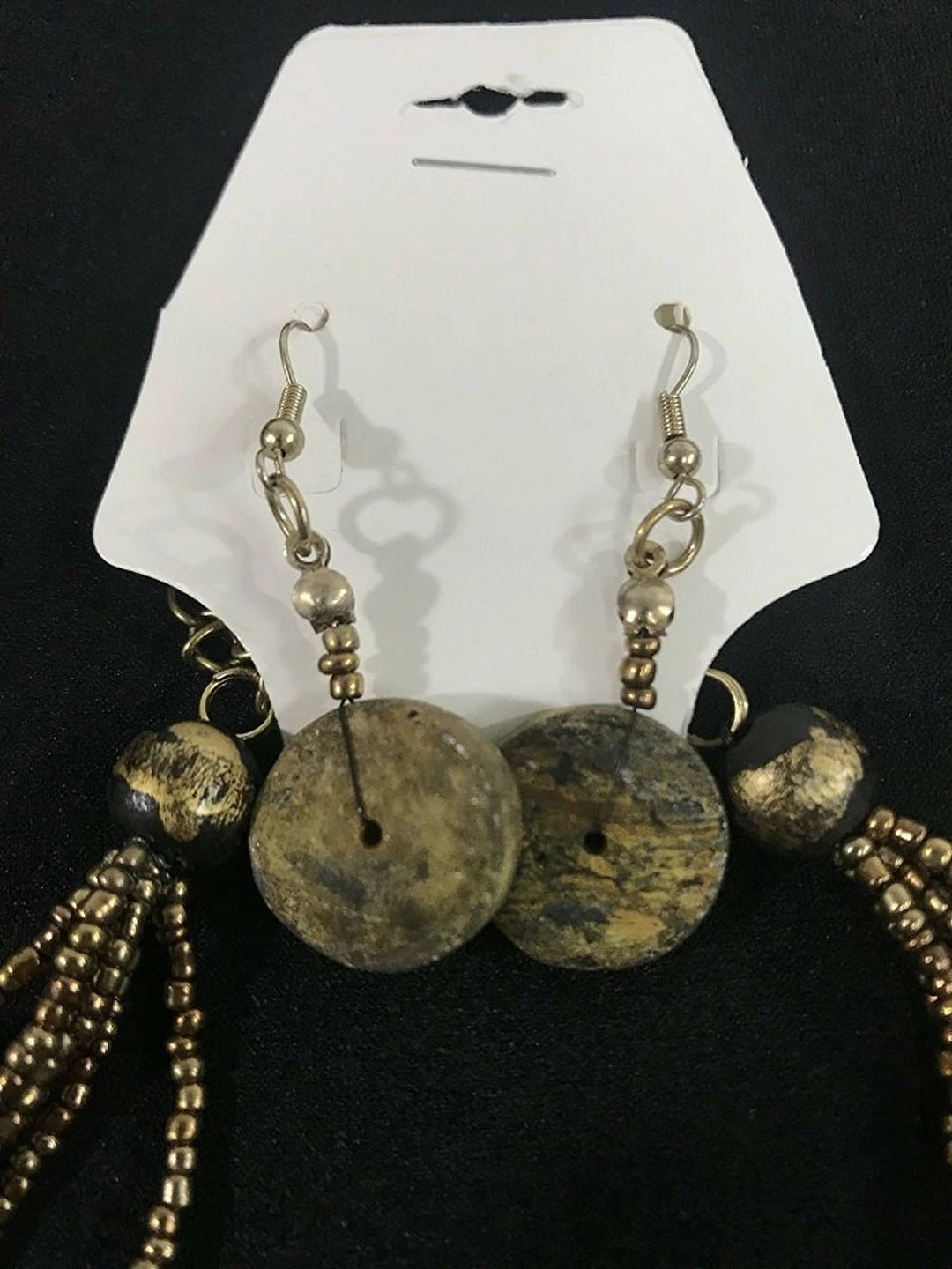 - Necklace is 10.5 inches long and the earrings are 2 inches long. Necklace is also adjustable to satisfy your length needs.