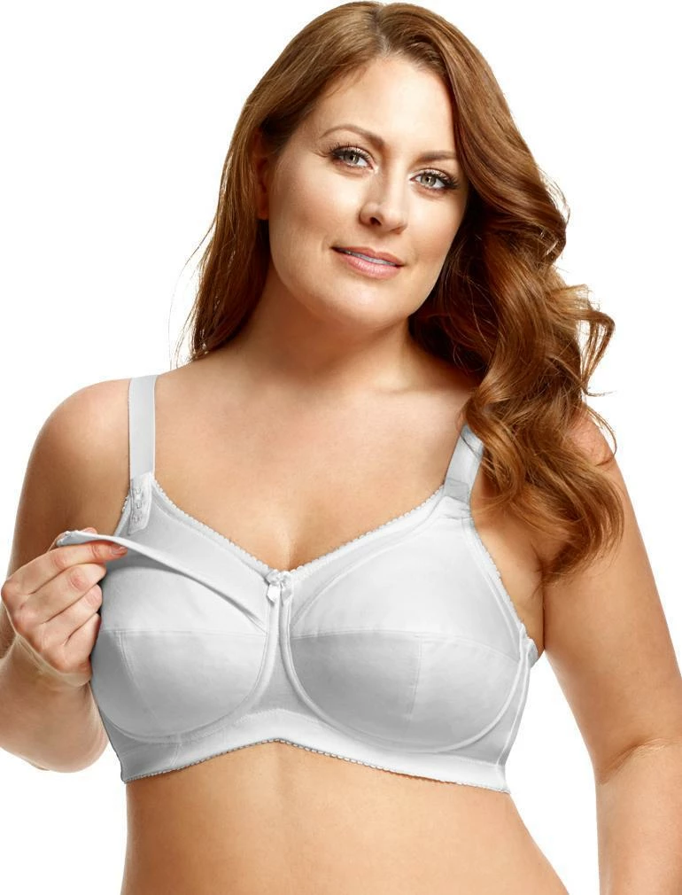 Cotton Softcup Nursing Bra gives complete support to the bust while nursing, engineered with a full cup sling that is lined with 100% cotton. Cups are 2 ply cotton with a three piece cup construction to encompass and evenly distribute the bust.