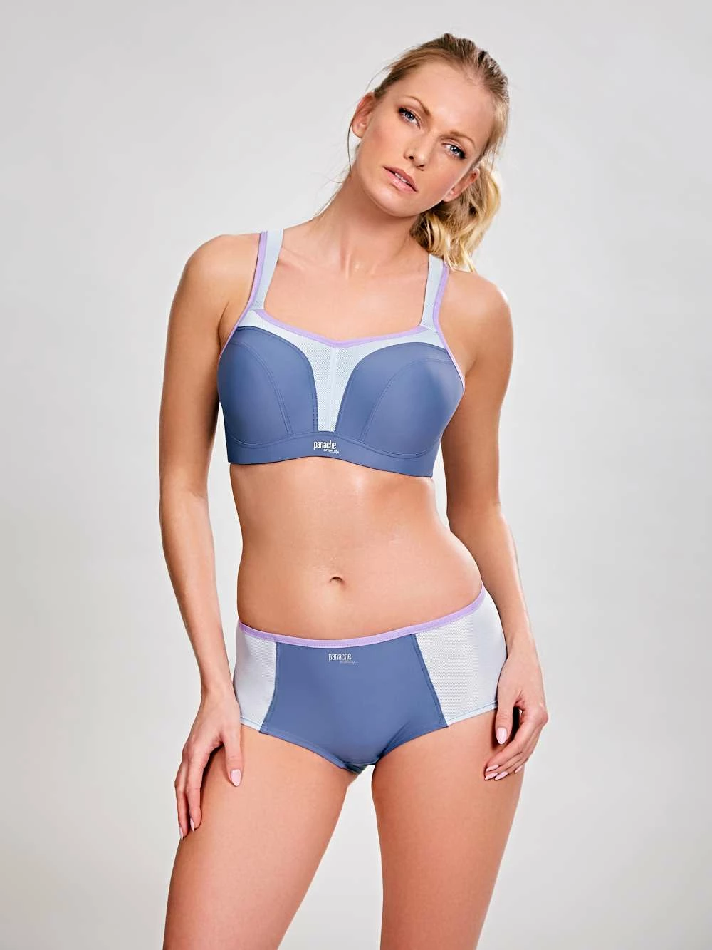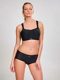 Fashion forward sports bra with an underwire. Features a padded straps and J-hook for racer back. Molded cups encapsulate the breast tissue and reduce bounce by 80%.