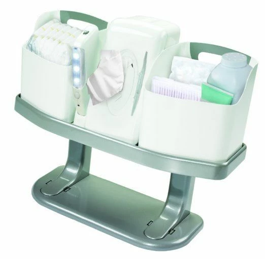 Keep all of your diapering accessories within hands reach during diaper changes. Includes a wipe holder, diaper storage container, pivoting auto-sensor night light, and storage holder for creams, lotions, and other diapering essentials.