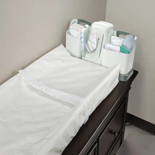 - Includes full-size changing pad and modular changing station for changing table or dresser